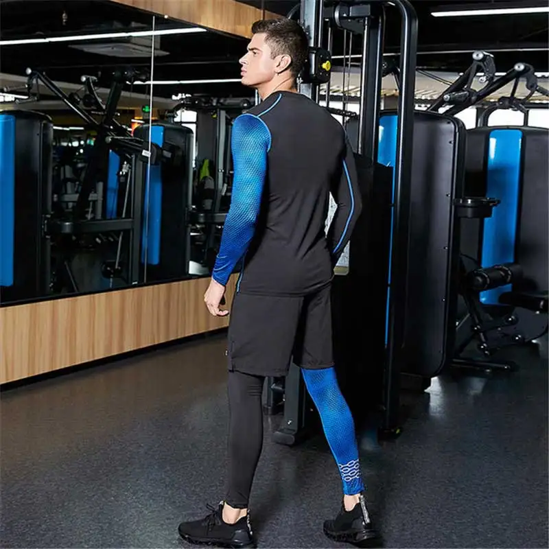 Men Long Johns Winter Fitness Gymming Sporting Suit Runs Top Shirts + Tight + Shorts Leggings Pants Thermal Underwear Sets