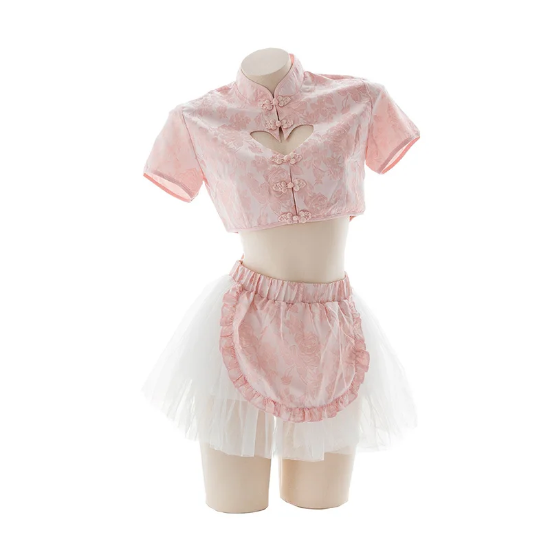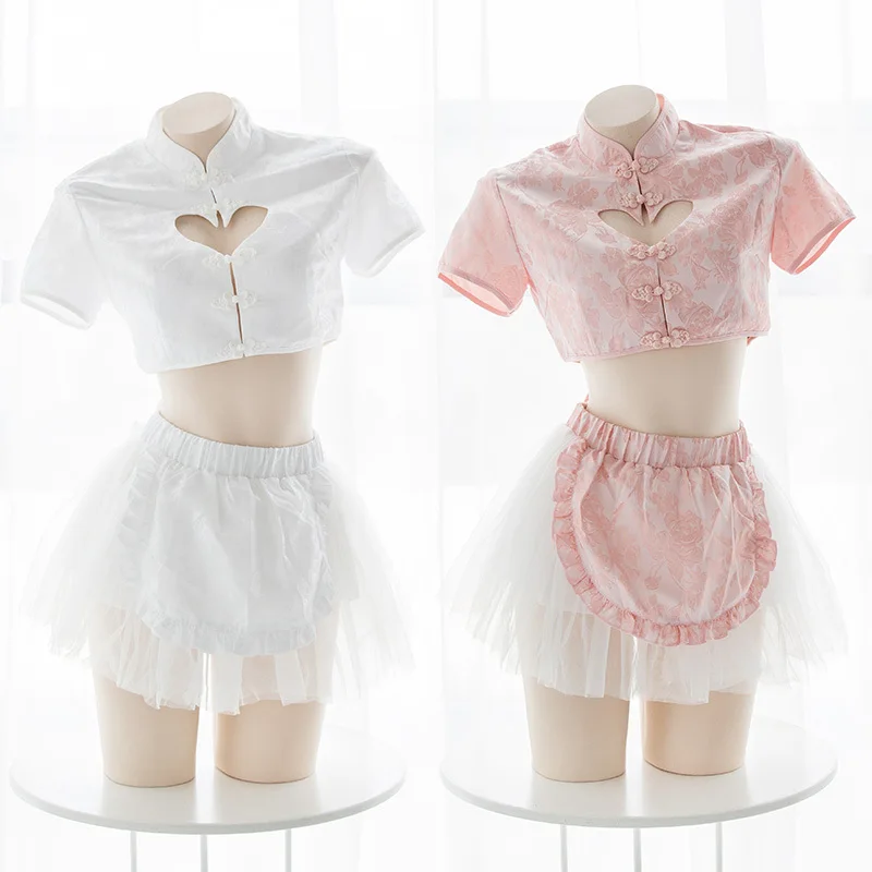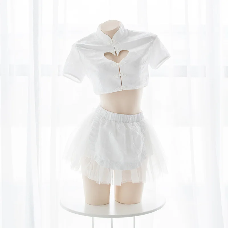 Related Product for Sexy Lolita Girls 2Pcs Set Cheongsam Cosplay Women's Love Hollow Out Short Tops + Mesh Tutu Suit 2